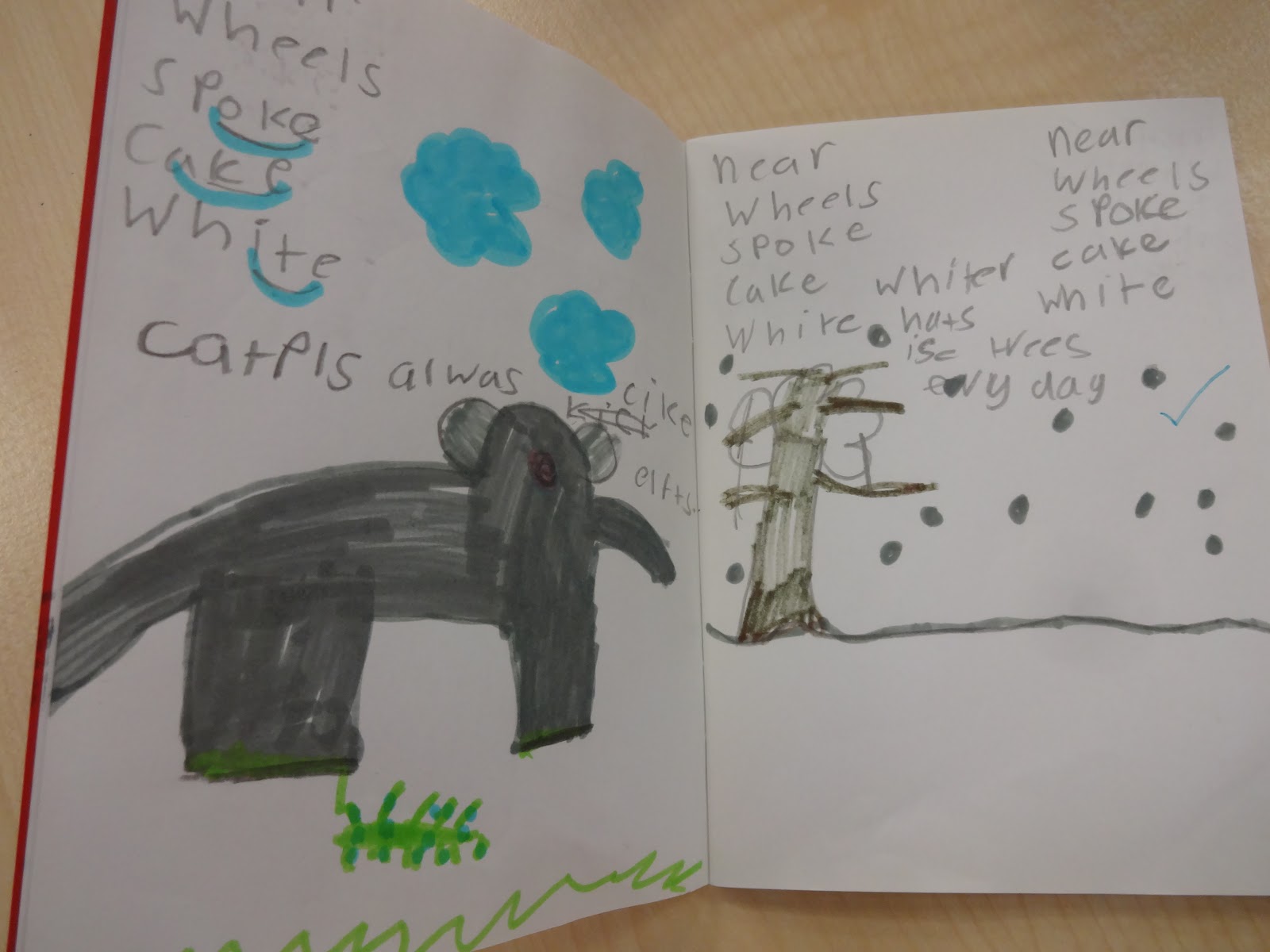 Visual preference – high frequency words are often spelt correctly ‘house’, ‘like’, ‘said’ but sounds may be missed out in other words ‘wet’ for went or letters may be in the wrong order ‘gril’ for girl